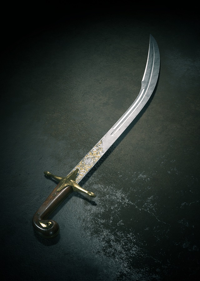 オスマン・クルチ クルチはトルコ民族の伝統的なサーベルで、15世紀後半まで出現をさかのぼることができる。反りのある片刃で、ヤルマンと呼ばれる刃の広がった先端部分により斬撃力が増す造りとなっている。高品質な鋼を素材とし、彫金で飾られていることが多い。 クルチは主に斬るための武器だが、反りのある刃と鋭い切っ先により、盾を回り込んで攻撃することも可能だった。中世において、トルコ発祥のクルチは中東の他の文化圏にも広まり、20世紀に至るまで広く使われ続けた。オスマン帝国においては、1800年代初めに軍隊の近代化が進む中で、クルチが西洋式のサーベルに置き換えられていったが、一般市民の間では、クルチは依然として民族衣装の一部として身に着けられていた。20世紀への変わり目には、オスマンの衛兵や高官の間で、クルチの帯刀が愛国心の象徴としてふたたび広がりを見せたこともある。 コメント