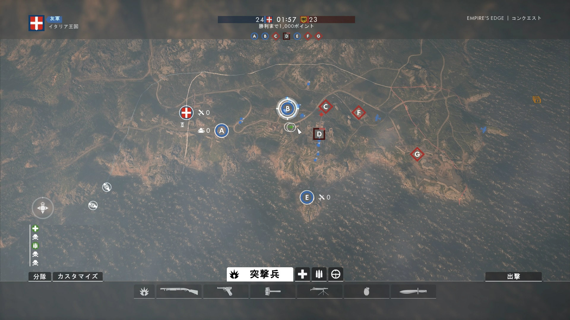 また、E拠点を奪取すると航空機が1機利用可能になる。