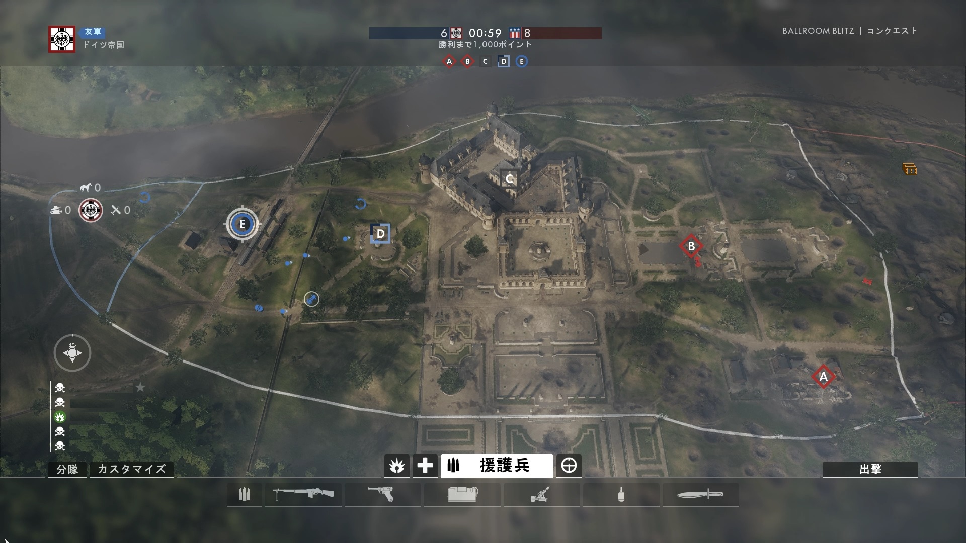 開幕はC殺到することになる、着く早い順から 戦闘機乗り捨て(18秒)>>装甲車、自走砲(30秒)>馬>突撃戦車>重戦車=ランドシップ、である(ドイツ側のほうが若干ビークルの進入が早い)