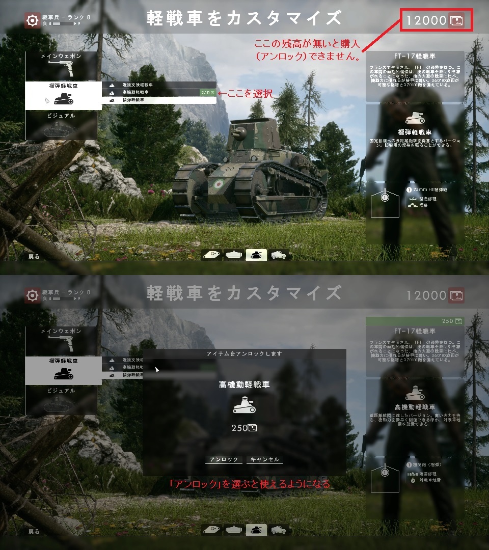 各兵科とビークルの装備やビジュアルを変更したり、アンロックしたりする事が可能だ。